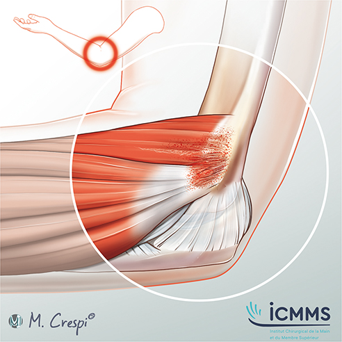 L’épicondylite, également appelée "tennis elbow", est une inflammation des tendons extenseurs des doigts et du poignet s’insérant à la partie latérale du coude.